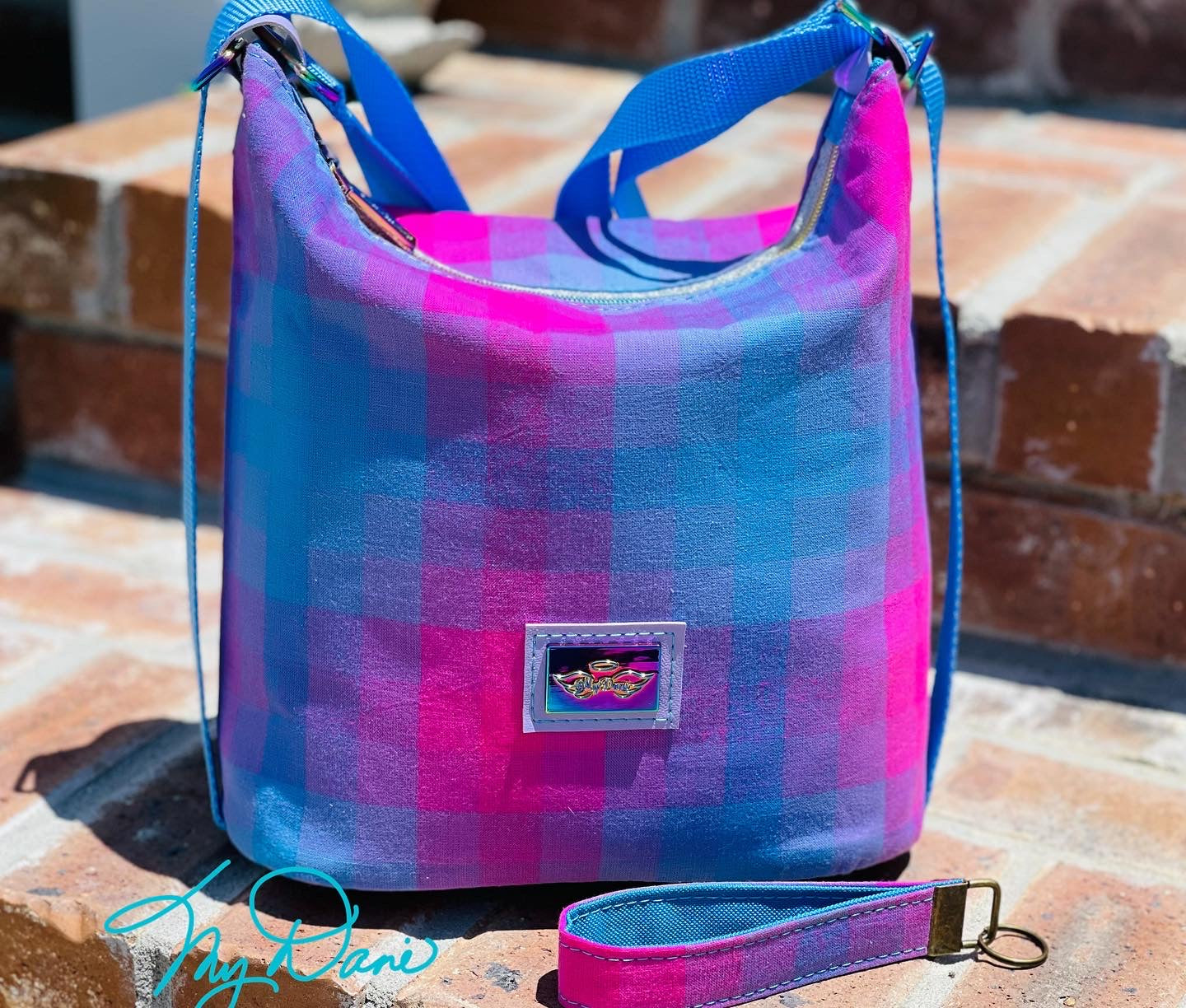 • Load image into Gallery viewer, The Krystal Convertible Handbag in AG Purple Plaid
