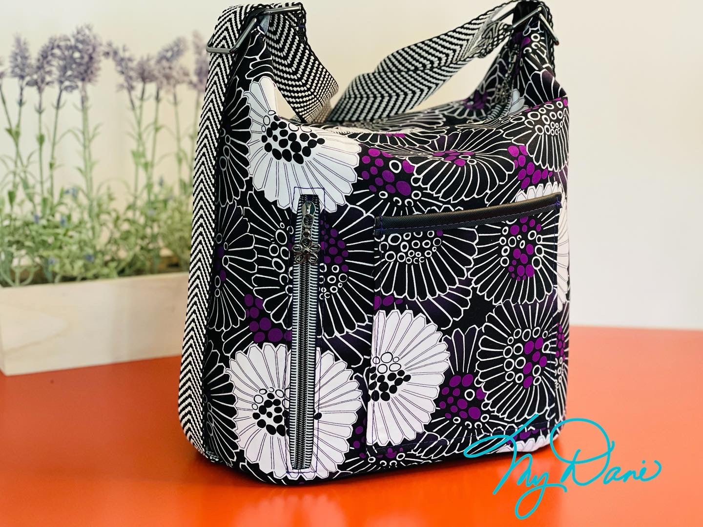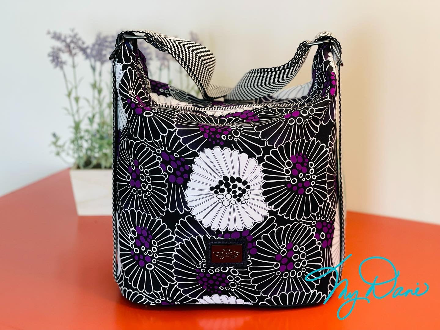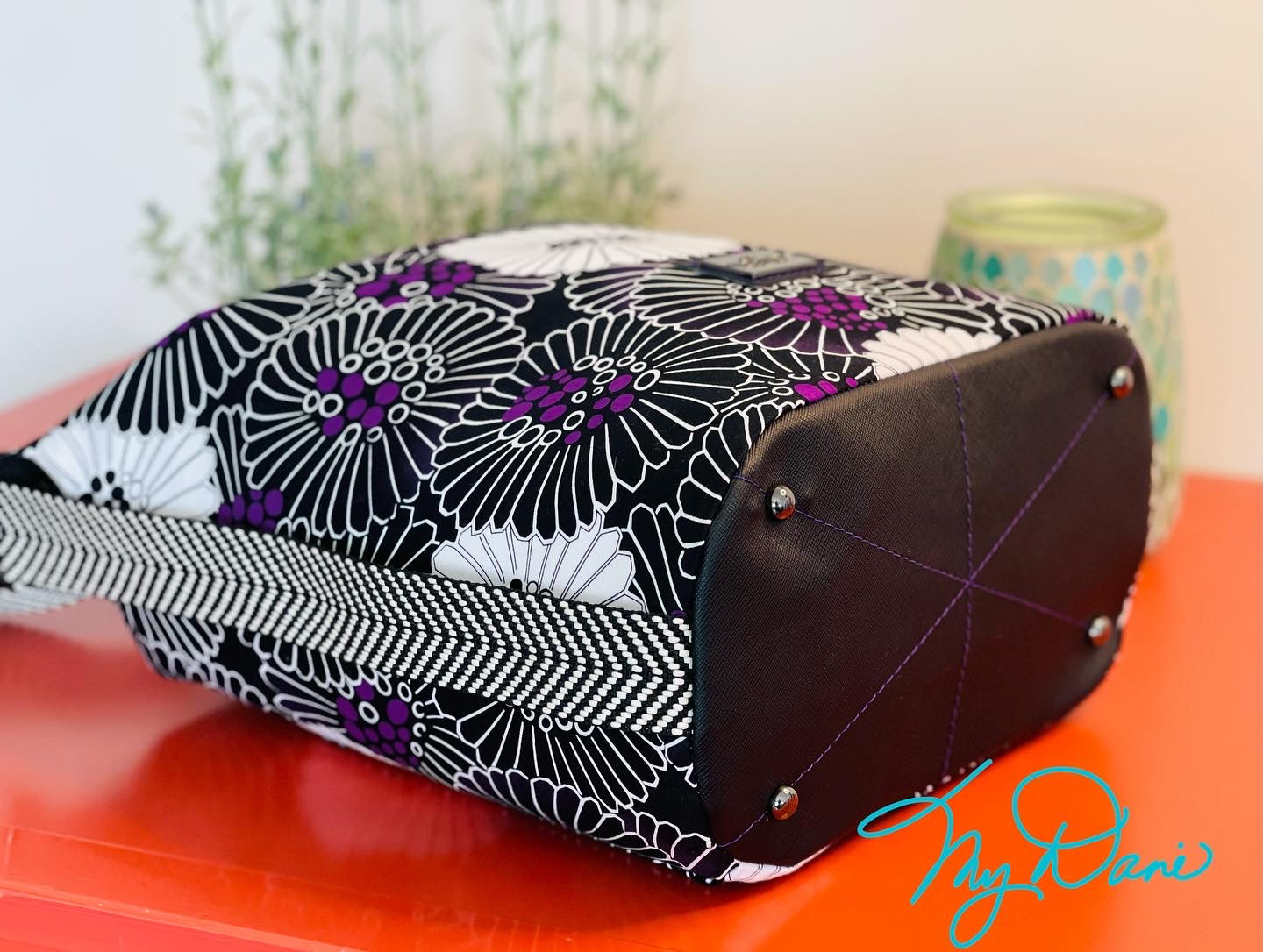 The Krystal Convertible Handbag Mini is a medium size bag that with one pull of the magic straps converts to a backpack. The lining is a waterproof canvas with a zippered pocket, a slip pocket and also has a built in credit card slot/slip pocket. The exterior of the bag has a zippered pocket and a slip pocket. Everything you need to stay organized and hands free.